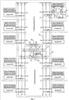 Фазированная антенная решетка с оптимизированными разностными ДН в двух главных плоскостях (Н и Е) состоит из панелей излучателей 1, полностью заполняющих раскрыв антенны, блоков фазовращателей 2, линеек волноводно-распределительной системы (ВРС) 3, каждая из которых состоит из первого и второго магистральных волноводов 4 и 5, волноводных Н-мостов 6, направленных ответвителей 7, фазовыравнивающих секций 8 и согласованных нагрузок 9, главного распределителя, состоящего из четырех основных линеек направленных ответвителей (НО) 10, четырех дополнительных линеек НО 11, четырех вторых дополнительных линеек направленных ответвителей 12, фазирующих секций 13, а также первого СВЧ – сумматора 14, суммирующего устройства 15, направленного ответвителя 16 с фазирующей секцией 17, второго СВЧ-сумматора 18.