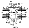 На фиг.3 показана на виде с направления А, показанного на фиг.2, вторая часть 4b корпуса в целом с девятью металлическими вставными соединителями 2b проводов, которые расположены и удерживаются в электроизоляционном уплотнении 5b. Вторая часть 4b корпуса предназначена для крепления с помощью фланца 4е с отверстиями 4g на наружной стенке напорного корпуса 3а. Проводной ввод 1, который, как показано на фиг.2, выполнен в виде штекерного соединения или, как показано на фиг.1, в виде втулки, может иметь один или при соответствующем выполнении любое количество проводников 2.