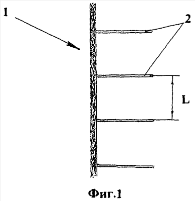 Шнур 1 по всей длине содержит ниточные петли 2, формируемые в процессе вязания шнура перпендикулярно к продольной его оси на заданном расстоянии L друг от друга.