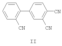 Эти соединения получают в результате осуществления следующей последовательности реакций: нитрование известного 2,3′,4′-трицианодифенила формулы II [Е.В.Пантелеева, Т.А.Ваганова, Е.А.Лукьянец, В.Д.Штейнгарц, ЖОрХ, 2006, 42, 1301-1309.]