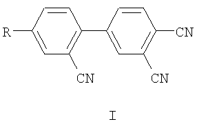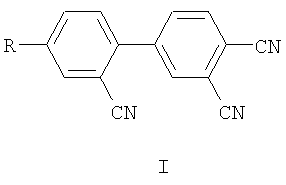 Изобретение относится к органической химии, а именно к производным 2,3′,4′-трицианодифенила общей формулы I:
