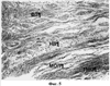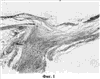 На фиг.3 представлен гистологический препарат глаза кролика, область диска зрительного нерва через 3 месяца после ФДТ: разрастание глиальной и фиброзной ткани на диске зрительного нерва. Окраска по методике Ван Гизон. Ув. ×200.