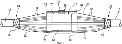Фиг.1 изображает соединительное устройство 10 для соединения индивидуальных проводов 12, 14 двух кабелей линии электропередач 16, 18. Соединительное изделие 10 расположено внутри наружной защитной оболочки 20, имеющей два противоположных конца 22, 24, окружающей кабеля 16 и 18 и герметизированной с ней, например, с помощью материала герметика 25. Пространство 26 в защитной оболочке 20 вокруг соединительного устройства 10, а также вокруг индивидуальных проводов 12, 14, заполнено герметизирующим материалом, таким как смола. Этот материал вводится в защитную оболочку 20 через отверстие 28, закрытое крышкой 30.