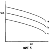 Кроме того, на ступени перед зажимом 37 аналого-цифрового преобразователя микрокомпьютера 27 размещена одна буферная схема, в которой используется транзистор 32 и нагрузочный резистор 33. Микрокомпьютер, использованный в этом примере, является стандартным изделием. Следовательно, имеют место значительные вариации изделий, как показано на графике вольтамперной характеристики на фиг. 5. Существует вероятность ошибок при обнаружении, так что добавляется одна буферная схема для исключения различий, имеющих место при сравнении кривых множества микрокомпьютера а, b, c, показанных на фиг. 5. Другими словами, используется внешний транзистор 32, который включается/выключается микрокомпьютером 27, чтобы повысить точность, исключив влияние вольтамперной характеристики микрокомпьютера 27.