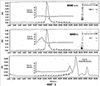 Чтобы подтвердить, что gp96 был олигомеризован Con А, общий гомогенат ткани Meth А-индуцированной мышиной фибросаркомы был приготовлен и обработан процессом, включающим хроматографию через колонки Con А и DEAE. Окончательно очищенный gp96 препарат был разделен на две части. К одной половине материала был добавлен экзогенный Con A в конечной концентрации 50 мкг/мл; ко второй половине был добавлен только буфер для контроля, оба образца культивировались при 37°C в течение 2 часов и затем подвергнуты SEC фракционированию (Superdex 200). Индивидуальные фракции были проанализированы с помощью SDS-PAGE и gp96- и con А-специфичной ELISA. Аналитические данные для материала, полученного без этапа буферного обмена показаны на левой панели; то, к чему был добавлен con А – направо. На левой панели пик gp96 находится во фракции 5, а уровни con А, как определено специфическим ELISA, расположены ниже. На правой панели (con А добавлен) очевидны два пика gp96, как показано SDS-PAGE (вставка; пиковые фракции 3 (стрелка) и 5), и gp96 ELISA (фракции 3 и 5) так же, как явный пик Con A в центре фракции 3. Con A вызывает сдвиг в позиции элюирования gp96.