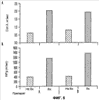 Образцы gp96 от двух независимых образцов мышиной опухоли CT26 (препараты A и B) были приготовлены, как описано выше для образцов, полученных из человеческой опухоли (см. фиг.1). Все четыре образца были исследованы на содержание con A (панель A) и на представление антигена in vitro, используя систему CT26 (панель В). В каждом случае материал, приготовленный в процессе, включающем этап буферного обмена (и имеющий повышенное количество con A), имел более высокую представительную активность in vitro, чем образец, полученный от гомогената соответствующей опухоли и приготовленный в процессе без этапа буферного обмена.