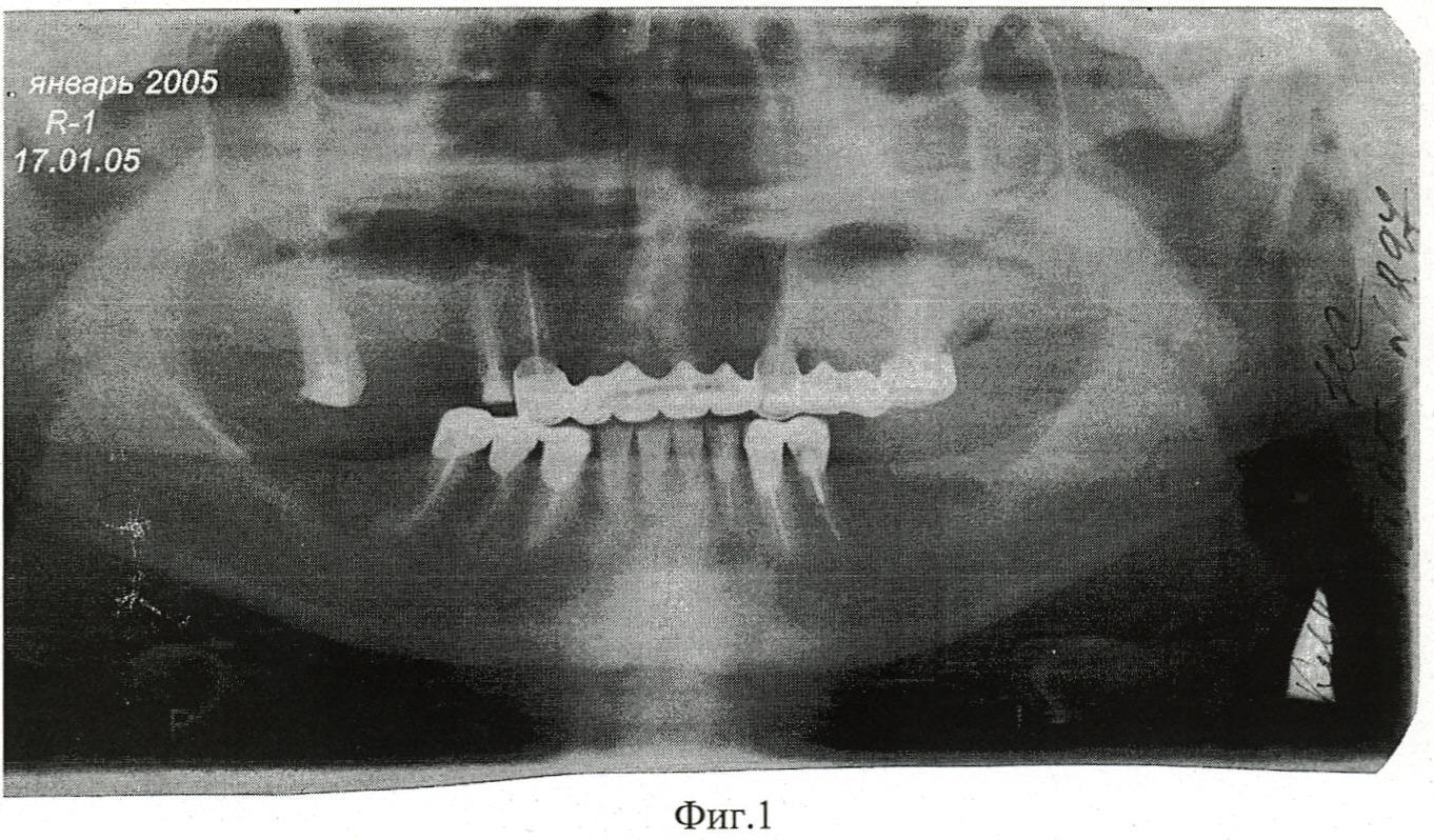 Пациентка К., 62 года, поступила в клинику ИСЦ «НАНО-ДЕНТ» с диагнозом хронический деструктивный периодонтит 23 зуба (см. Фиг.1).