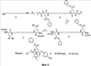 Данная схема включает в себя реакцию коммерчески доступного 1,12-додекандиамина (3) с защищенной аминокислотой (AK-D), с образованием дизамещенного производного защищенных аминокислот (D-AK)2L, которое далее освобождали от защитных групп. В случае соединения (2) получающиеся концевые аминогруппы первой аминокислоты использовались для введения второй и третьей аминокислоты по такой же схеме. В результате реакции с высокими выходами образуется продукт, содержащий одну (три) аминокислоты, димеризованные с помощью додецильного линкера (L).