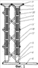 Гибкие элементы 7 выполнены в виде лент из негорючей ткани и снабжены замками в виде липучек или люверсами со шнуровкой. Гибкие элементы 7 закреплены одним концом на торце оболочки 3, а другим – на кронштейнах 9 стойки 8. В нижней части оболочки 3 выполнены окна 10, через которые полость оболочки сообщается с помещением. Стойка 8 может быть выполнена в виде параллелограмного рычажного механизма 11, снабженного кронштейнами 9 (см. фиг.8), либо в виде поворотной консоли 13, закрепленной на опоре 12 (например, на стенке помещения) посредством оси 14 (см. фиг.7). Консоль 13 также снабжена кронштейнами 9. Первый вариант предназначен для полевых условий, например палаток и других временных помещений. Вариант с консолью 13 предусмотрен для помещений, на стенах которых можно стационарно закрепить опору 12.