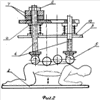Пациент становится на колени на основание 2, упираясь локтями и предплечьем в основание (см. фиг.2) таким образом, чтобы спина находилась и касалась концов цилиндрических поверхностей роликов 5 упорных элементов. После этого осуществляется прогиб спины и, преодолевая при этом усилия, вызванные давлением грузов 6 и сопротивлением пружин 9, происходит нагружение мышц осевого скелета. При возвращении пациента в исходное положение происходит нагружение мышц грудной клетки. Количество прогибов определяется степенью патологических изменений в осевом скелете и грудной клетки. Тот же эффект может быть достигнут и изменением количества и массы съемных грузов одного или нескольких упорных элементов.