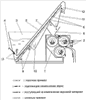 Вальцовая плющилка для зерна состоит из камеры для плющения 1, внутри которой смонтированы параллельные вращающиеся вальцы 2 для измельчения (плющения) зерна, загрузочный бункер 3 с регулировочной заслонкой 4, питающее устройство, представляющее собой скребковый транспортер 5 с обрезиненными скребками 6 в корпусе 7, соединенное с камерой для плющения зерна 1 посредством питательного бункера (течки) 8, при этом нижняя стенка 9 корпуса транспортера, по которой перемещается поступивший на измельчение (плющение) зерновой материал, состоит из трех соединенных между собой участков: цельнометаллической пластины (участок АВ), решета с мелкими отверстиями (подсевного решета) (участок ВС) и решета с крупными отверстиями (колосового решета) (участок CD). Под решетами ВС и CD, а также под верхней кромкой нижней стенки 9 корпуса транспортера 7 смонтированы приемники фракций соответственно 10, 11, 12.