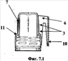 На Фиг.7.1 изображена крышка по заявке 2007136807 RU, верхняя часть (7), место крепления крючка к крышке (6), место (3), которое находится между крышкой и крючком, крючок (10), широкое нижнее основание крышки (11).