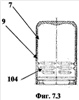 На Фиг.7.3 изображена крышка, у которой верхняя часть (7) имеет одинаковую ширину с нижним основанием крышки, место (9), в котором можно разместить уплотнительный выступ, резьбовые каналы (104).