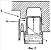 На Фиг.2 изображен формообразующий элемент пресс-формы (2), который проходит с верхней стороны, сквозь место крепления крючка к крышке (6), расположенный на верхней части (7) крышки.