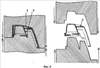 Так же известна схема формообразования крышки, где две плиты пресс-формы движутся навстречу друг другу – одна в одну, например, как в патенте US 3157322 А Фиг.7.5, плита с верхней стороны опускается на крышку и формирует ее верхнюю внешнюю часть, так и в заявке 2007136807 RU Фиг.1; 2; 13 плита опускается с верхней стороны, формируя внешнюю часть крышки.