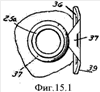 На Фиг.16; 16.1 видно, что отверстие в виде кольца (39) не принимает участия для осуществления прохода элемента пресс-формы с верхней стороны в место крепления кольцеобразного крючка к бутыли и место, которое находится в месте (3), а также между (37) и (20а).