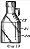 Другой известный способ по заявке ЕР 0764588 А1 формирует т-образную ручку Фиг.17.1 или кольцеобразный крючок Фиг.15 на горловине бутыли, и в случае формирования кольцеобразного крючка формообразующие элементы пресс-формы формируют элементарное большое кольцо, в которое может пройти ладонь руки и таким образом получается ручка-кольцо для переноски тары. Сама ручка-кольцо размещена на бутыли и скреплена с ней.