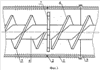 Пресс включает цилиндр 1 с отверстиями для выхода масла 2, секцию с матрицей для выхода жмыха 3, шнек 4 с лопастями в секциях транспортирования 5 и сжатия 6, звездообразную промежуточную матрицу 7, имеющую хотя бы одну лопасть в виде ножа, острая режущая кромка 8 которого проходит по его поверхности. Лопасть ножа может быть выполнена перпендикулярно движению материала, так и под углом, форма лопасти может быть различной. Электропривод, загрузочное устройство и формующая матрица не показаны на фигуре.