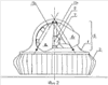Форма поворотных рулей 8, показанная на фиг.2, также является не обязательной. Более того, у поворотных рулей разных групп форма может отличаться. Конкретная форма поворотных рулей 8 в каждой группе определяется тем, какой режим изменения тяги требуется обеспечить и какие для этого требуются финансовые и трудовые затраты. Под изменением тяги в данном случае понимается как изменение величины тяги, так и изменение направления тяги. В частности, можно указать, например, эффект зависания, возможность создавать дифферент на корму, компенсация опрокидывающего момента при рулении, минимальный радиус разворота при заданной скорости. К примеру, для обеспечения эффекта зависания необходимо полностью перекрывать воздушный канал 6 тяги поворотными рулями 8. Если же все полностью повернутые поворотные рули 8 имеют такую форму, что закрывают не весь воздушный канал 6 тяги, судно на воздушной подушке, показанное на фиг.1 и фиг.2, будет медленно двигаться на максимальной высоте воздушной подушки.