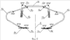 На фиг.3 ссылочные позиции 12л и 12п обозначают соответственно левую и правую рулевые колонки. Каждая рулевая колонка 12 содержит рукоятку 13, установленную с возможностью независимого перемещения вокруг оси вращения. Оси вращения рукояток 12л и 12п на фиг.3-5 считаются параллельными, однако это не является обязательным требованием. Важно лишь, чтобы эти оси вращения были размещены примерно на одном уровне от пола пилотского места 3. Иными словами, эти оси вращения могут быть наклонены к вертикальному направлению и даже в пределе могут быть продолжением друг друга (что, однако, было бы весьма неудобно для пользователя). Каждая из рукояток 13 имеет загнутое плечо 14, так что в нейтральном положении оба загнутых плеча 14 от точки крепления рукоятки 13 на соответствующей оси вращения до конца загнутого плеча 14 примерно параллельны друг другу.