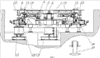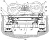На фиг.2 показан вид в плане установки разворота тележек грузовых и пассажирских вагонов, на котором можно увидеть закономерность установки функциональных элементов оборудования относительно осей технологических путей вагоноремонтного предприятия.