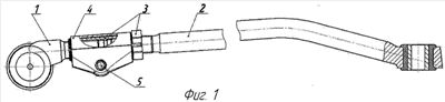 В случае попадания влаги и коррозии резьбы в области регулирующего устройства тяги его достаточно просто разобрать. Для этого ослабляется и (при необходимости) удаляется стяжной болт 5. Поскольку защитный кожух и хомут не имеют ребер жесткости, достаточно развести приливы хомута, чтобы сдвинуть его (при необходимости) с разрезного промежуточного элемента 3. Прокручиванием разрезного промежуточного элемента 3 добиваются регулировки схождения колес. Поскольку разрезной промежуточный элемента 3 имеет сквозную прорезь, при необходимости можно слегка развести его в области прорези и провернуть. Далее, выкрутив наконечники 1 и 2, нанести на резьбу смазку и закрутить их обратно. Поставив на место защитный кожух 4 и стяжной болт 5, провести регулировку углов схождения ведущих колес и стопорение узла регулировки.