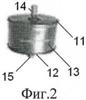 Виброизолятор верхнего подвеса каюты (фиг.2) содержит корпус, который выполнен в виде двух оппозитно расположенных фланцев 11 и 12, имеющих форму, конгруэнтную форме опорных поверхностей эластомера 13, и жестко связанных с эластомером, причем на фланцах закреплены элементы крепления 14 и 15 в виде резьбовых стержней, расположенных перпендикулярно фланцам 11 и 12 и соосно эластомеру 13, причем профиль боковой поверхности эластомера выполнен гиперболическим в виде бруса равного сопротивления, имеющего постоянную жесткость в осевом и поперечном направлениях, что обеспечивает равночастотность упругого элемента виброизолятора во всех направлениях. Профиль боковой поверхности эластомера может быть выполнен цилиндрическим или коническим (на чертеже не показано). Кроме того, профиль боковой поверхности эластомера может быть выполнен гофрированным, а отношение высоты виброизолятора h к диаметру D опорной поверхности эластомера находится в оптимальном соотношении величин: h/D=0,45 1,55.
