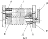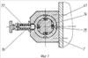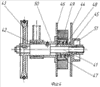 На одном конце ведущей полуоси 59 оправки 4 установлены муфта свободного хода 58 и храповой механизм 57, а на другом ее конце расположен фланец 69 с прорезями для прокладок 64 и имеются штифты 70 для фиксации и крепления втулки 71 оправки 4.
