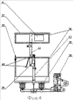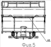 Здесь: 1 – шасси; 2 – основание опорное; 3 – рама подъемно-поворотная; 4 – телескопическая стрела; 5 – платформа рабочая; 6 – передние выносные опоры; 7 – задние выносные опоры; 8 – настил; 9 – фиксаторы опор; 10 – надстройка, на которой крепится опора поворотная 11 с гидромотором 12; 13 – ограждение основания опорного 2; 14 – грузовой отсек средней части основания опорного 2 с откидными бортами; 15 – отсек электрооборудования с правого борта под настилом 8 в задней части основания опорного 2; 16 – выносной пульт управления, в транспортном положении расположен внутри отсека электрооборудования 15; 17 – стойка опорная телескопической стрелы 4, расположенная в передней части основания опорного 2; 18 – узел фиксации стрелы в транспортном положении; 19 – бак гидросистемы; 20 – упоры противооткатные; 21 – задняя балка, установленная в задней части основания опорного 2; 22 – гидроцилиндр слежения платформы рабочей 5; 23 – кронштейн для крепления гидроцилиндра 24 подъема стрелы 4; 25 – кронштейн стрелы 4; 26 – кожух, закрывающий гидросистему рамы подъемно-поворотной 3; 27, 28, 29, 30 – секции стрелы 4 (фиг.1); 31, 32 – соответственно верхний и нижний короба секций стрелы (фиг.6); 33 – гидроцилиндр телескопирования (фиг.1); 34 – гидроцилиндр ориентации рабочей платформы 5; 35 – шарнирный механизм платформы рабочей 5 (фиг.3, 4); 36 – ограждение платформы рабочей 5; 37 – облицовка перил платформы 5; 38 – ограничитель предельного груза; 39 – изоляторы; 40 фиксаторы; 41 – пульт управления; 42 – крепление карабинов предохранительных поясов рабочих (фиг.3, 4); 43 – ограждение посадочного проема рабочей платформы 5 (фиг.5); 44 – боковые стойки верхней и нижней секций рабочей платформы с шарнирным механизмом 35 (фиг.3, 4); 45 – кронштейн крепления рабочей платформы 5 к головной части верхней секции 30 стрелы телескопирования 4.