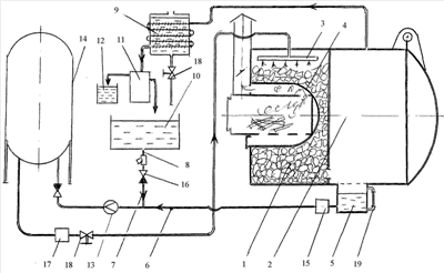 Когда топка сильно прогреется начинается интенсивное испарение жидкости. Уровень жидкости на указателе уровня 19 будет уменьшаться.