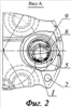 На фиг.1 изображена фронтальная проекция центробежного размалывающего аппарата; на фиг.2 – горизонтальная проекция центробежного размалывающего аппарата (см. вид А); на фиг.3 – выносной элемент, схема циклического зацепления. Стрелками показано направление вращения всех зубчатых элементов, входящих в зацепления конической и планетарной передач.