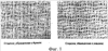На фиг.1 показаны ткацкие рисунки на поверхности ткани со стороны бумаги и со стороны машины согласно одному из предпочтительных вариантов осуществления изобретения. Здесь все нити, расположенные по ходу ткани в машине, имеют диаметр 0,35 мм, а все нити, расположенные поперек хода ткани в машине, имеют диаметр 0,40 мм. Плотность плетения составляет 18,9 нитей/см в направлении по ходу ткани в машине и 13,0 нитей/см в направлении поперек хода ткани в машине. Глубина кармана для этой ткани составляет приблизительно 430-440 мкм. Кроме того, для увеличения сопротивления истиранию в этом рисунке имеются уточные бегунки на стороне ткани, обращенной к машине.