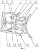 Рама 4 и проушины 5 и 6 находятся под углом к опорной поверхности грунта, благодаря чему при выносе секций 2 и 3 вперед относительно центральной секции 1 нож 13 секции 1 не мешает резанию грунта ножами 12 опускающихся боковых секций 2 и 3.