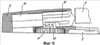 На фигуре 11 показана еще одна форма реализации амортизирующего элемента, при котором ограничение хода выполняет упор 13”’, на котором образована шейка 52, которая может входить в соседние отверстия 50, 51 и затем остается зафиксированной в них. Шейка 52 дополнительно входит в выемку 14”’ на толкателе 10, за счет чего упор 13”’ ограничивает максимальное движение цилиндра 12 и толкателя 10.