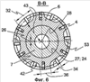 Режущие пластины 4, 5, закрепленные в проходном фрезере-райбере 2 и образующие поверхность вырезаемого окна в обсадной колонне 17, а также режущие пластины 4, 5, закрепленные в калибрующем фрезере-райбере 3 и образующие поверхность вырезаемого окна в обсадной колонне 17, расположены с одинаковым эксцентриситетом соответственно 26, 23 и оппозитно по разные стороны относительно центральной продольной оси 24 единого полого вала 7, при этом поз.29 – кольцо для регулировки вышеуказанного расположения эксцентриситетов 26 и 23 оппозитно по разные стороны относительно центральной продольной оси 24 единого полого вала 7, показано на фиг.4, 5, 6.