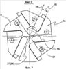 На фиг.7 показан вид Г на фиг.4 на пазы на торце единого полого корпуса зарезного и проходного фрезеров-райберов, предназначенные для установки и закрепления в них технологических режущих модулей для зарезного фрезера-райбера (технологические режущие модули не показаны).