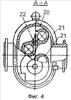 Вакуум-насос 8 (см. А-А) состоит из корпуса 20, двух синхронных поршней 21 одинакового профиля, посаженных на вал 22. Труба 16 имеет цилиндрическое устройство 23 для прохода газа в зону забоя скважины и заполнения всех пластов, содержащих нефть.