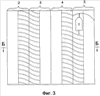 – на фиг.3 – схема совокупного размещения отвалов отработанных песков в выработанном пространстве при разработке целиковых песков косым (несимметричным) забоем;