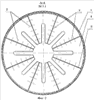 Суть изобретения поясняется чертежом, где на фиг.1 и фиг.2 представлен разрез двигателя с зарядом твердого топлива и конструкцией подкрепления твердотопливного заряда, состоящих из: 1 – стержней, 2 – пластин, 3 – заряда твердого топлива, 4 – конструкции подкрепления.