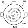 В подвижной спирали 26 согласно вышеописанному варианту воплощения витки 26b имеют трапецеидальную форму, в которой нижняя сторона и наклонные стороны формируют угол 1°, когда витки 26b секут по плоскости, которая включает центр конструкции, но форма может представлять собой трапецеидальную форму, в которой нижняя сторона и наклонные стороны образуют угол от 0,5 до 2°.