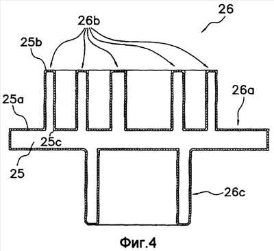 В настоящем варианте воплощения отношение толщины частей, которые соответствуют виткам 24b, 26b, к толщине частей, которые соответствуют концевым пластинам 24а, 26а, составляет 0,4 в заготовке 25 подвижной спирали и заготовке неподвижной спирали. Соответственно, включение воздуха на этапе тиксолитья заготовки 25 подвижной спирали и заготовки неподвижной спирали может быть эффективно предотвращено.