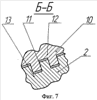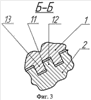 В случае внешнего расположения винта относительно ролика (фиг.5) при вращении винта 2 ролик 10 вовлекается во вращение в противоположном направлении относительно направления вращения винта 2 силами трения на боковых поверхностях 11 контактирующих профилей 12, 13. За один оборот винта 2 ролик 10 вместе с ползуном 8 переместится по направляющим 9 на расстояние, равное ходу резьбы, при этом направление вращения винта против часовой стрелки, а принятым направлением резьбы – правым – обусловливается поступательное движение ползуна 8 в сторону опоры 4.