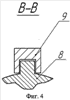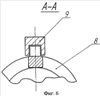 На фиг.5 схема ролико-винтовой передачи включает ролик 10 с наружными кольцевыми выступами, который посредством радиально-упорных подшипников 6 и 7 смонтирован в ползуне 8, расположенном с возможностью перемещения параллельно оси винта 2 в направляющих 9, также закрепленных на основании 5, а винт 2 установлен на опорах 3 и 4, закрепленных на основании 5.