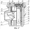 Для стабильного качения шара 6 по дорожке качения 7 без увеличения трения качения оптимальной является ширина радиального паза 8, равная (0,35-0,55)dш, где dш – диаметр шара. При уменьшении ширины паза 8 уменьшается диапазон расходов, при которых шар 6 опирается при вращении на оба выходных ребра радиального паза 8 (наиболее устойчивое положение шара 6). При увеличении ширины паза 8 увеличивается заклинивающее усилие, действующее на шар 6 и, как следствие, увеличивается коэффициент трения качения. Часть дорожки качения 7, расположенную ниже и выше радиального паза 8, предпочтительно выполнить тороидальной формы с диаметром сечения тора dт=(1,05-1,15)dш, что обеспечивает небольшие контактные напряжения и стабильность траектории шара 6 при его качении с опорой в одной точке (в нижней части диапазона расходов).