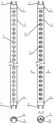 Для подключения оптически прозрачной трубки 1 к электрической сети к последней соединяют разъемы 3, размещенные в боковых стенках 2, что приводит в работу светодиоды 5, размещенные на плате 4. Окружающий воздух, проникающий к светодиодам 5 через отверстия 6 и 7, обеспечивает эффективное охлаждение светодиодов 5 и блока питания 8.
