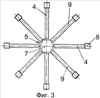 1. Устройство для производства искусственного снега, содержащее привод в виде электродвигателя, на одном конце полого вала которого неподвижно закреплен узел распыления воды, проточные каналы которого сообщены с полостью полого вала электродвигателя, другой конец полого вала электродвигателя соединен с трубопроводом подачи воды, отличающееся тем, что проточные каналы узла распыления воды выполнены в виде ряда трубок, расположенных с заданным равным шагом между собой радиально в плоскости, перпендикулярной оси вращения вала электродвигателя, при этом входы трубок соединены с полостью вала электродвигателя, на выходе трубок закреплены форсунки, трубки в продольном разрезе выполнены с внутренним каналом переменного сечения с уменьшением к выходному концу трубки.
