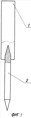 На фиг.1, 2 изображен донный репер, где 1 – ножки камертона, 2 – стержень.