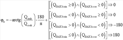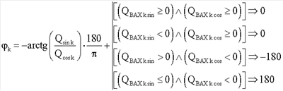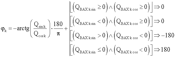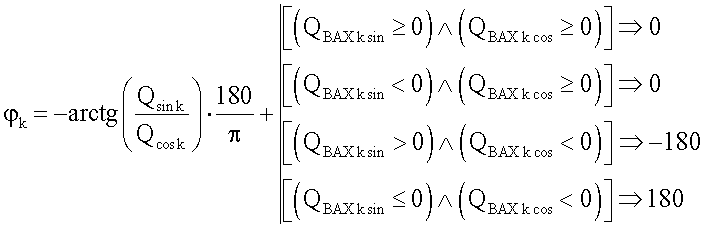 используя которые определяют синусную Qsink и косинусную Qcosk площади вольтамперной характеристики для точек совместного решения a(bsin0) и a(bcosQ) соответственно