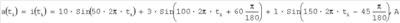 Т.к. в способе, выбранном в качестве прототипа, есть привязка к периоду анализируемого сигнала, рассчитали массив мгновенных значений для N=200 точек с шагом дискретизации t=10-4 с, что соответствует периоду tN=T=0,02 с (осциллограмма тестового анализируемого сигнала приведена на фиг.2).