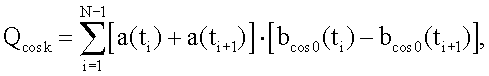 используя которые определяют синусную Qsin k и косинусную Qcos k площади вольтамперной характеристики для точек совместного решения a(bsin0) и a(bcos0) соответственно